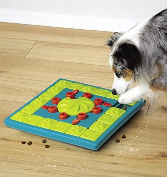 Vous cachez des croquettes ou des friandises dans les compartiments. Le chien doit déplacer les pièces pour les libérer.